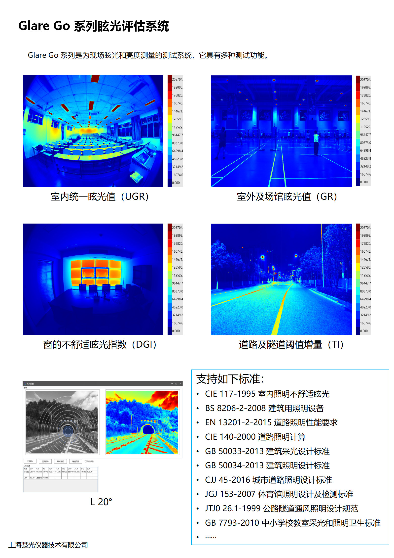 眼睛的垂直照度也是許多眩光指标中的輸入變量。具有高動态範圍的空間分辨亮度測量相機可以測量這些量。