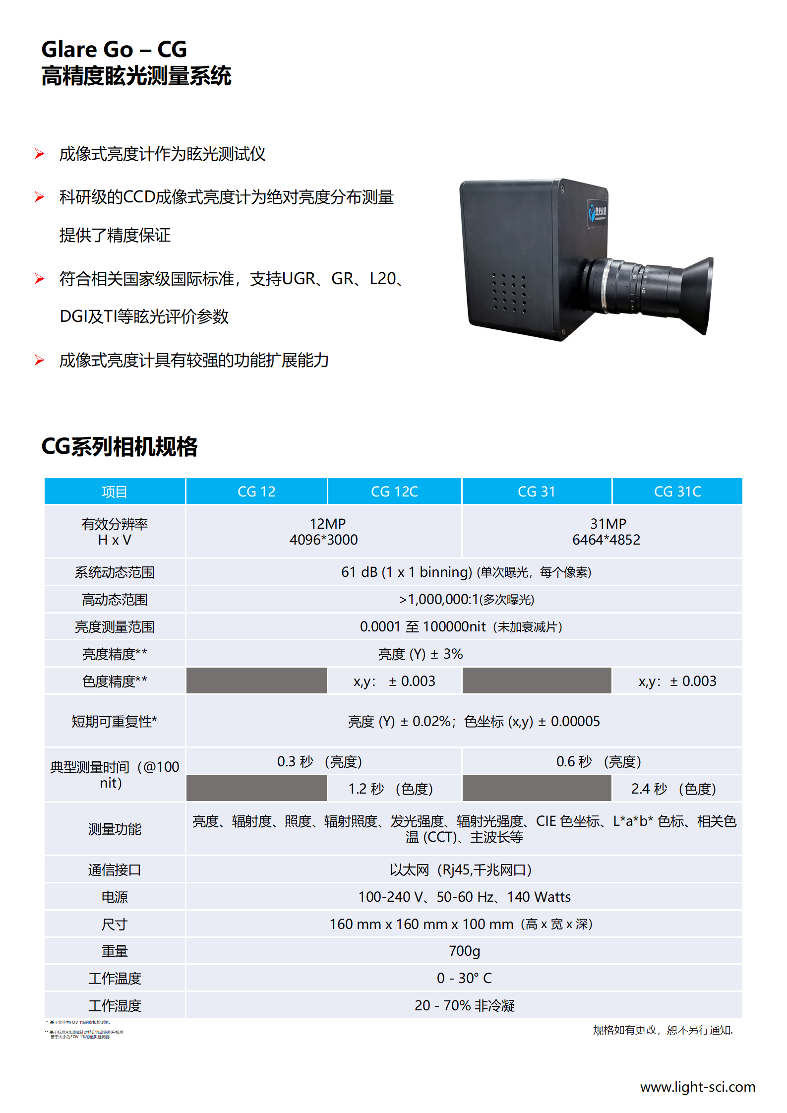 測量室内和室外光源的亮度和亮度分布。另一個測量量是用于視覺任務的表面上的照度。